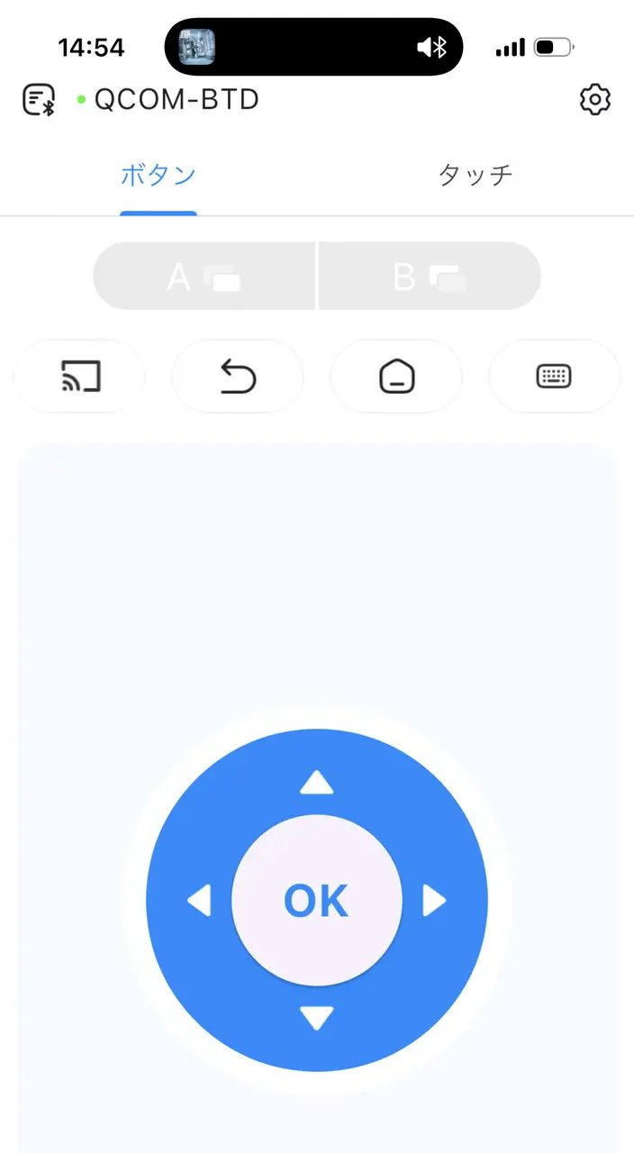 OTTOCAST NanoAIとスマホをBluetooth接続した状態でアプリを起動すると、アプリ上の仮想コントローラでインターフェースを操作できるようになる。