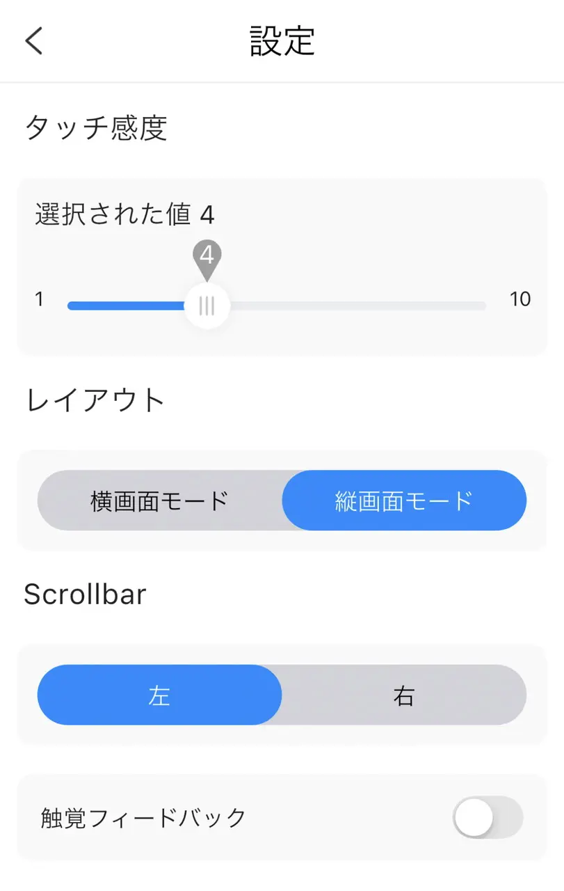▼タッチ感度なども調整可能。