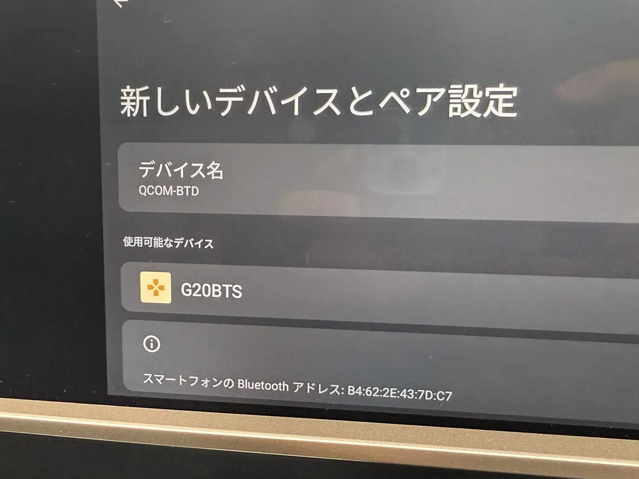 ▼OTTOCAST NanoAI側のBluetooth設定画面に「G20BTS」が表示されるので、選択することで接続が完了する。