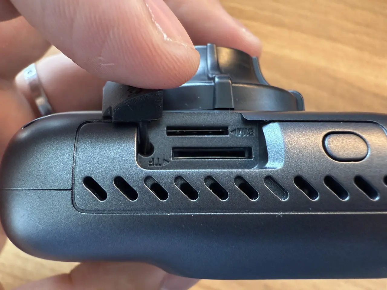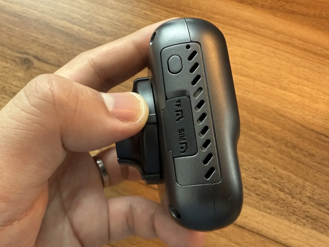 ▼左側面の様子。物理ボタンとカードスロットが用意。