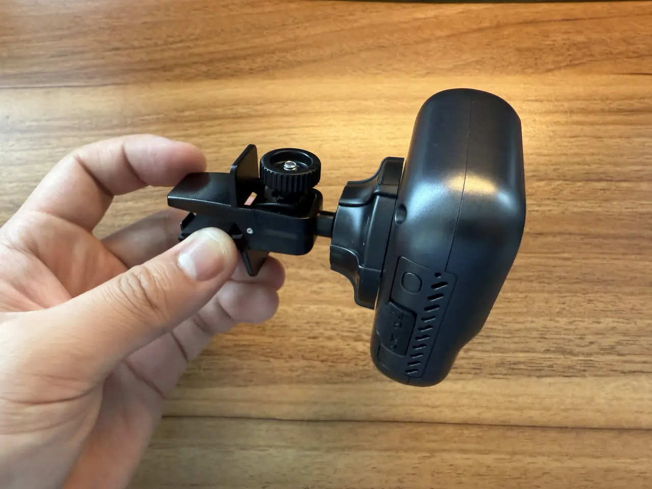 ▼付属のボールヘッドスタンドを使用して、車内のエアコンルーバーに取り付けることができる。