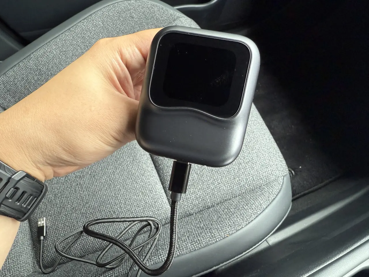 接続方法は非常に簡単。USB Type-Aポートのみ搭載している車両の場合はシガーソケットからの給電が必要(カーチャージャーは別売り)だが、分かりやすい図付きの説明書が付属するため、初めて扱う場合でも支障なく接続を完了できた。