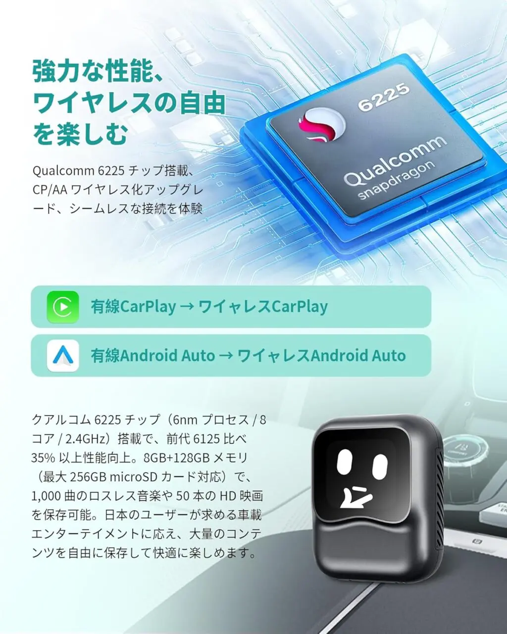 以上の通り、CarPlay対応ナビに接続するだけでカーナビをスマホ化でき、様々なアプリや便利機能を利用可能。さらにはAIを活用した音声操作もサポートするなど、前モデルから大幅な進化を果たしたCarPlay AIボックスとなっている。