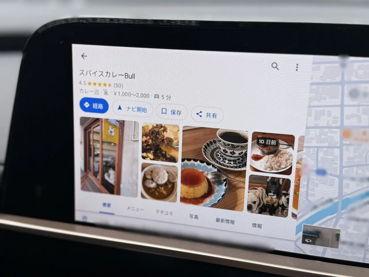 ▼Google Mapなどの場合は、マップ上から対象施設の詳細や写真、口コミ、営業時間などの細かな情報まで閲覧できるので、一般的な純正車載ナビと比べて利便性は数段上だ。