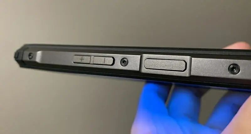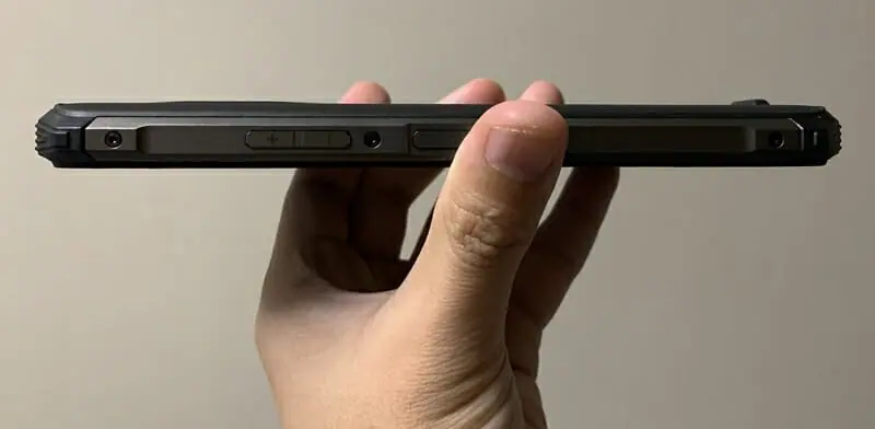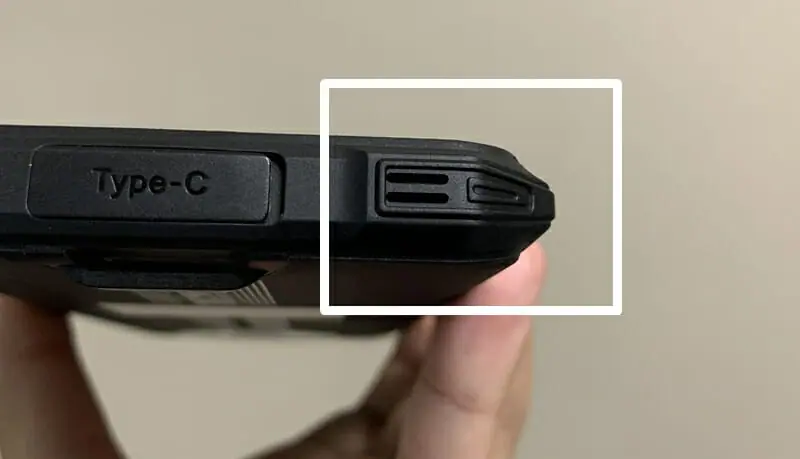 ▼右側面には電源ボタンと音量調節ボタンが用意。