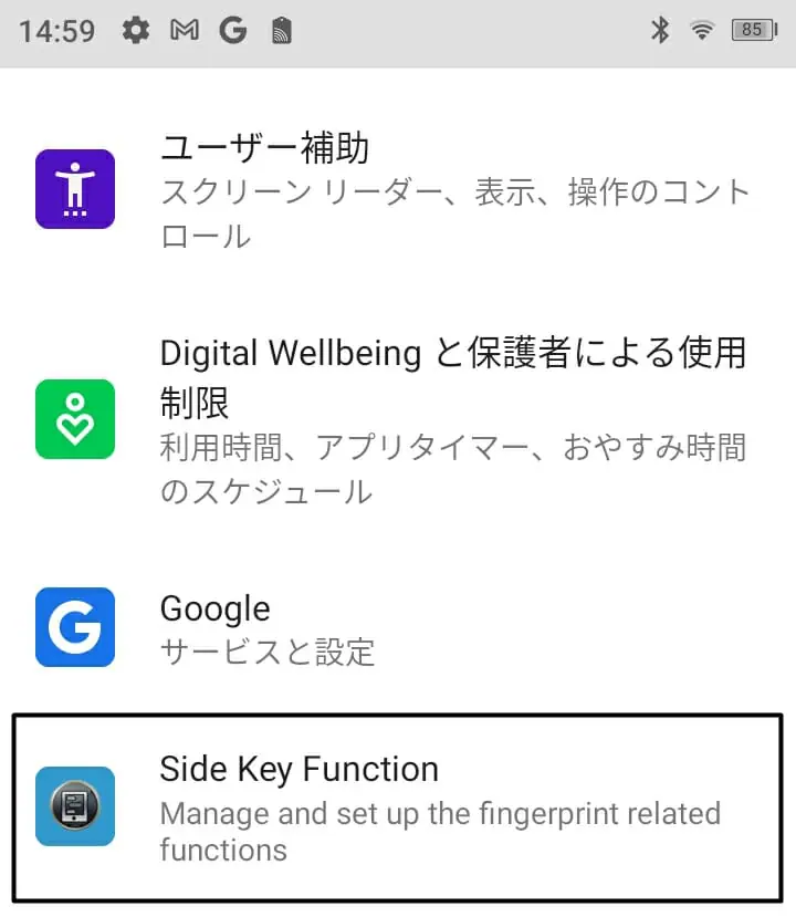 ▼設定アプリよりキーの設定が可能。