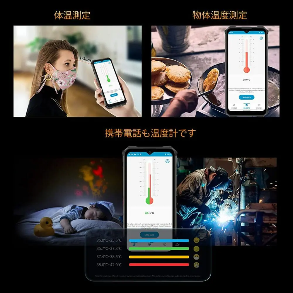 そして背面の温度計センサーを用いて、ヒトや物の体温(温度)を測定する機能も用意されている。