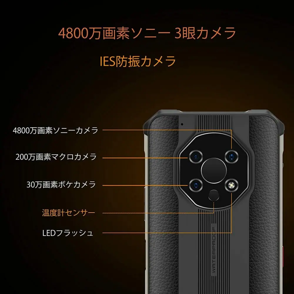 | 内蔵カメラ | リア:Triple Rear Camera: 48MP+2MP+0.3MP, Sensor:IMX582 SONY Camera, O2M2032Aフロント:8MP, Sensor: IMX314 SONY Camera |