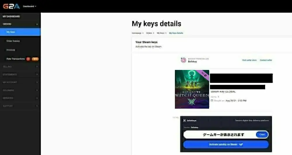 外部ストア『G2A』でDestiny 2: The Witch Queen(漆黒の女王)を購入