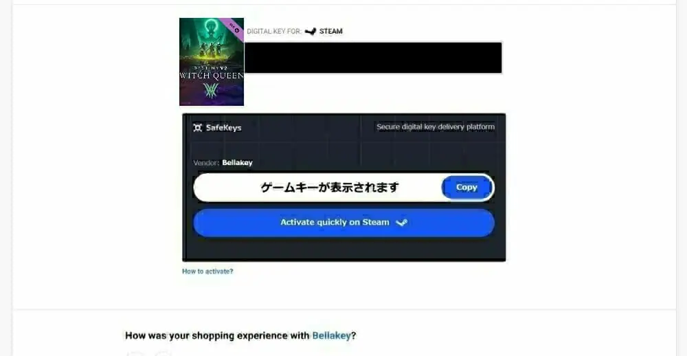 ▼製品を有効化するページが出てくるので、G2Aで購入したsteamキーを入力してゲームを入手しましょう。