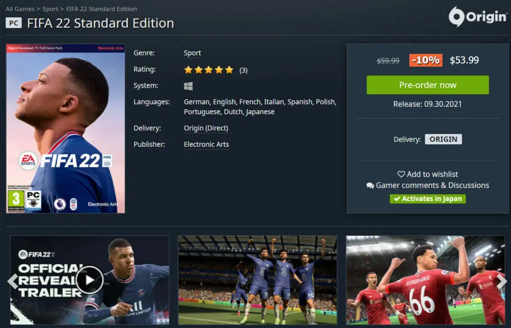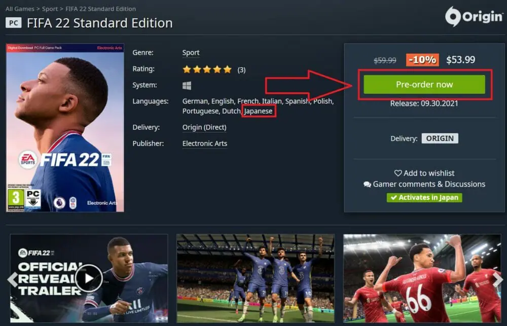 アカウントの作成が完了したら、FIFA 22を購入しましょう。