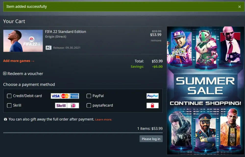 外部ストア『Gamesplanet』でFIFA 22を購入
