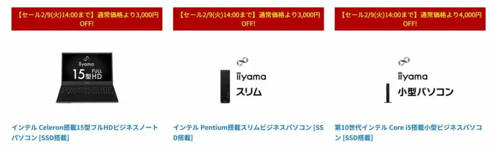 セール期間は2020年2月9日(火)までとなっていますが、同日の14:00までである点に注意してください。