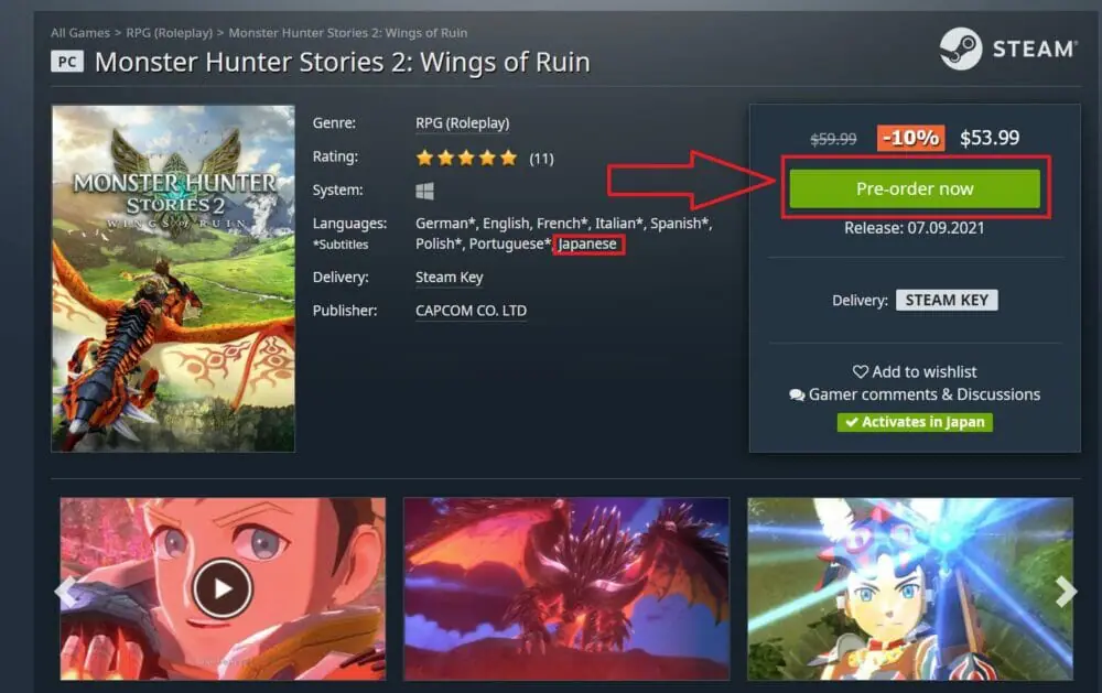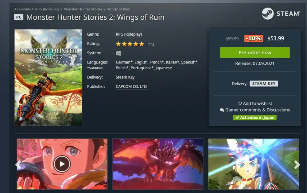 これでお得にSteam版『モンスターハンターストーリーズ2』を購入することが出来ました!