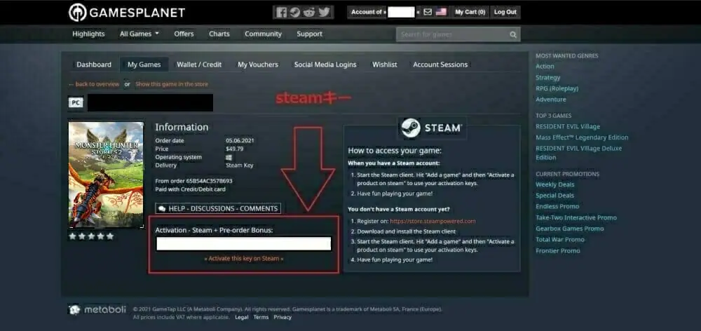 Gamesplanetでは、Steamで使用することができる "ゲームキー" を、通常よりも安い価格で購入することができます。