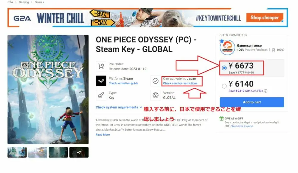 ワンピース オデッセイを安く購入するには、『G2A』(G2A.COM Limited)という海外のゲーム購入サイトを利用します。