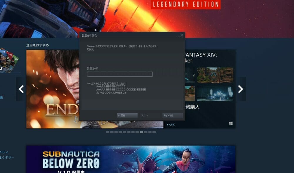 手順④:Steamでゲームキーを登録する