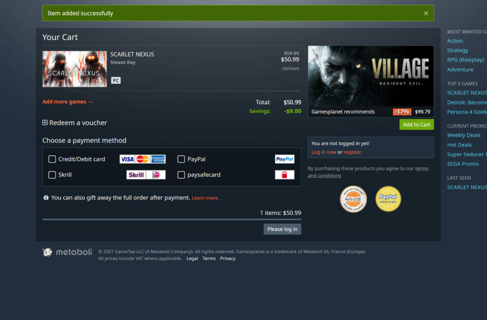 外部ストア『Gamesplanet』でスカーレットネクサスを購入