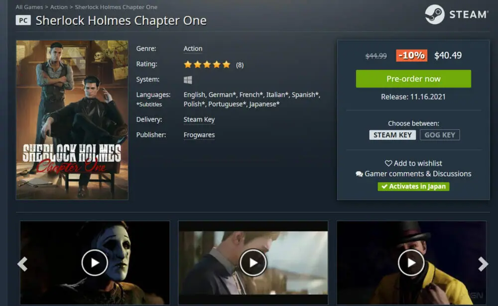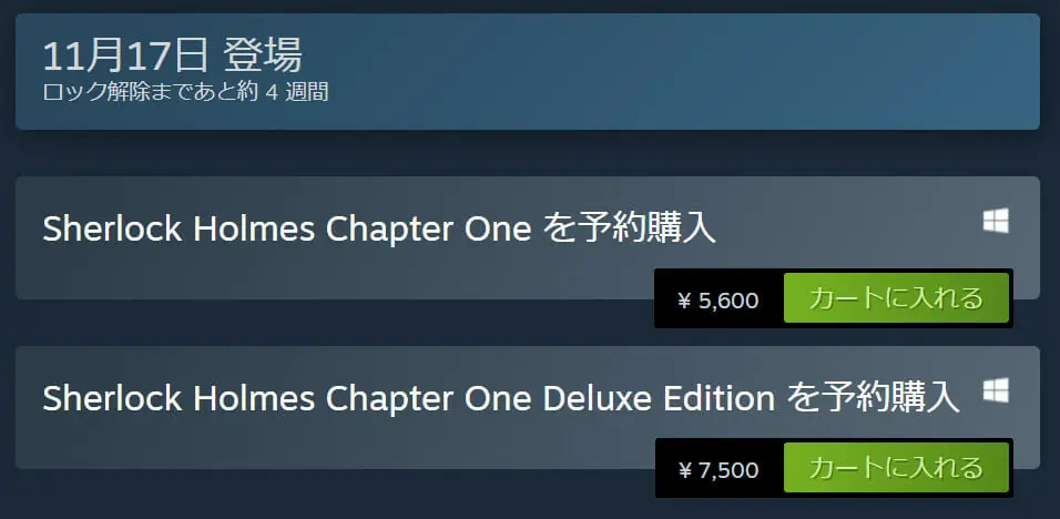 『Sherlock Holmes Chapter One』の予約は現時点(記事執筆時点)において、各プラットフォームで既に開始されています。