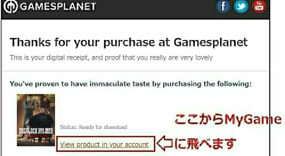 ▼または登録したメールアドレスに、gamesplanetから「My Games」に飛べるメールが届いてます。