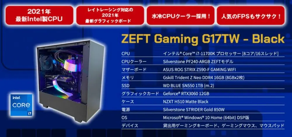▼対象モデル②:ZEFT Gaming G17TW - Black
