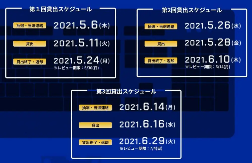 本キャンペーンでは貸出スケジュールが大きく3回に分けて実施されます。