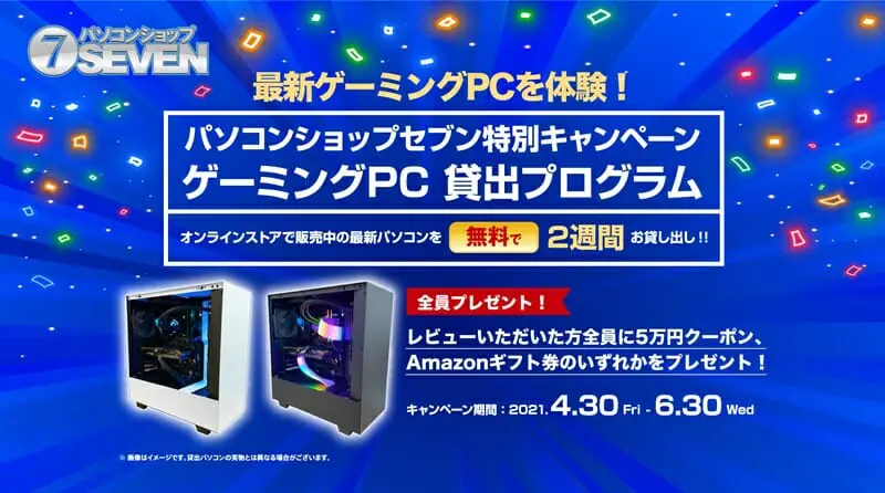 BTOパソコンを扱う大手オンラインPC販売ストア『パソコンショップSEVEN』にて、最新のゲーミングPCを無料でレンタルして試すことのできる期間限定貸出プログラムが実施されます。