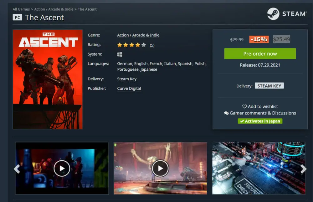 『Gamesplanet』におけるThe Ascentの販売価格は以下の通りです。