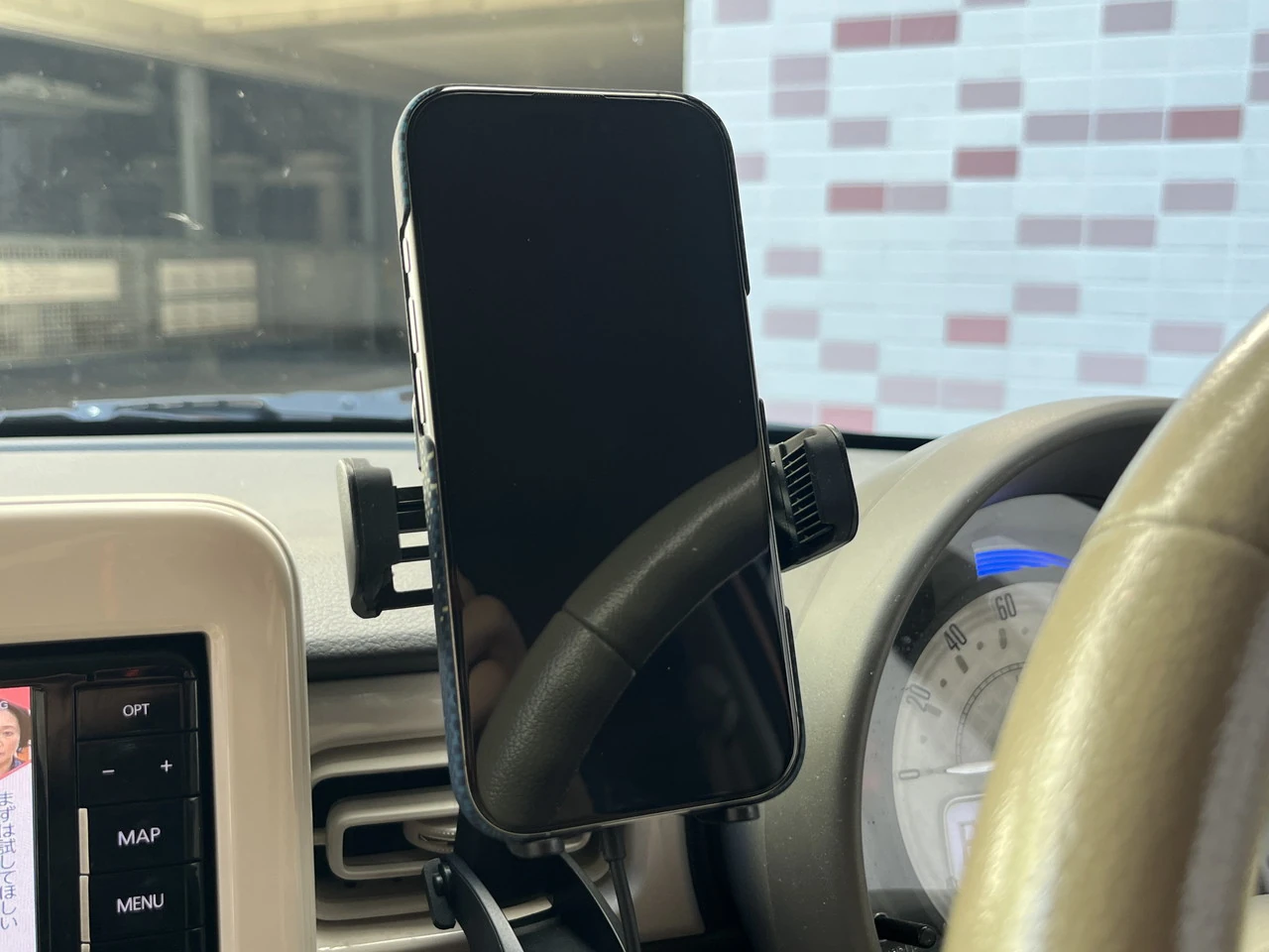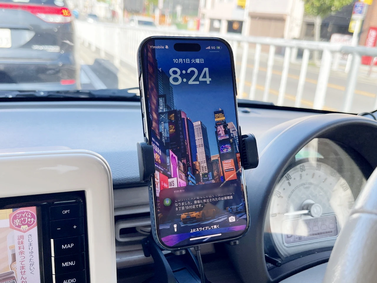 ▼Qi対応の車載型ワイヤレス充電器にも対応。