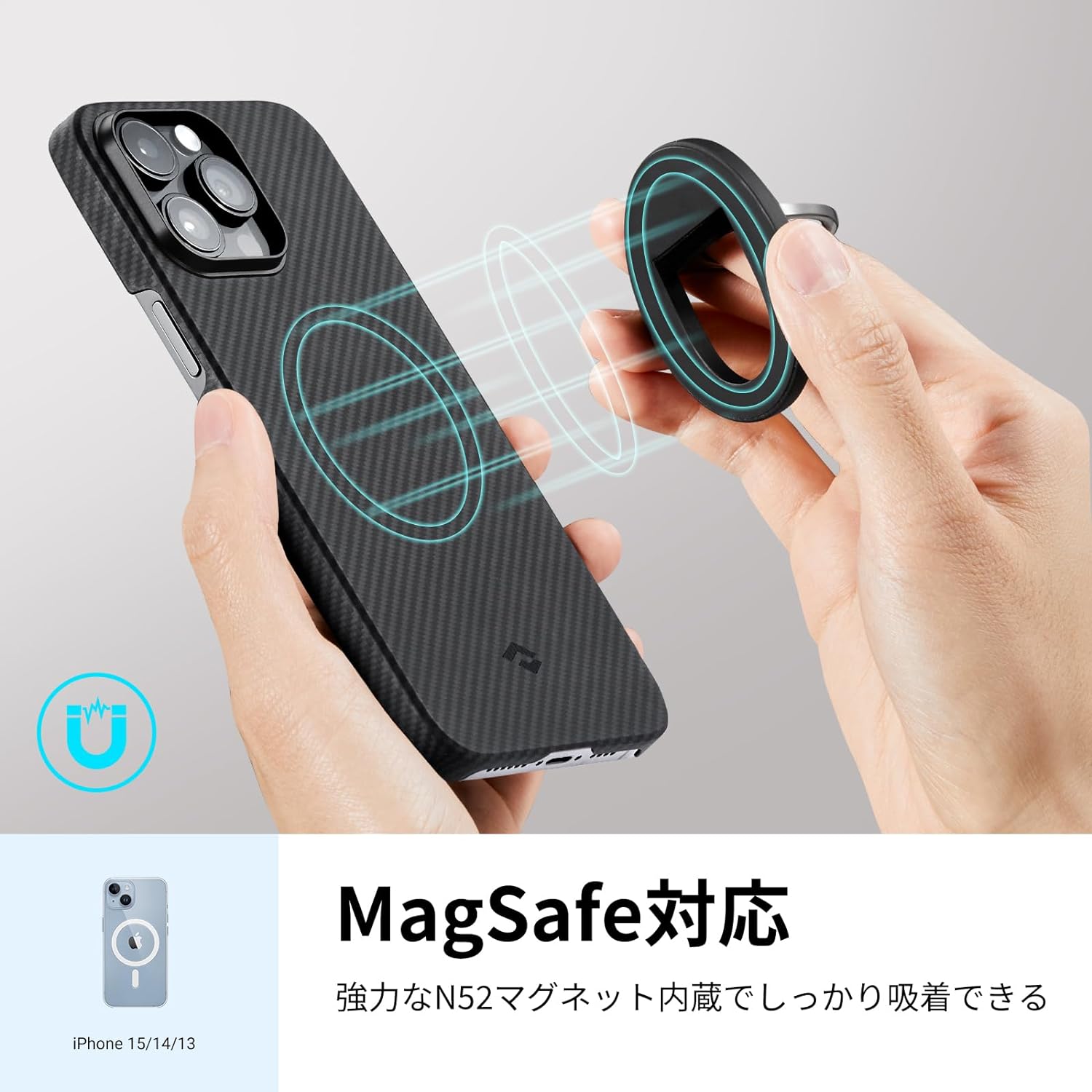 また、MagSafe対応スマホリングも装着できる。
