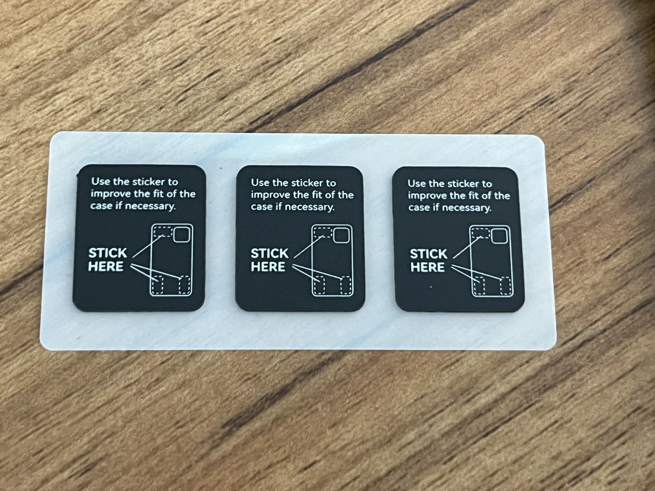 ▼ケース固定用のシールが付属。スマホ本体とケースをより強く固定したい場合に貼る。ただ、貼らなくてもシッカリと装着できるため、個人的には使う必要はないと思う。