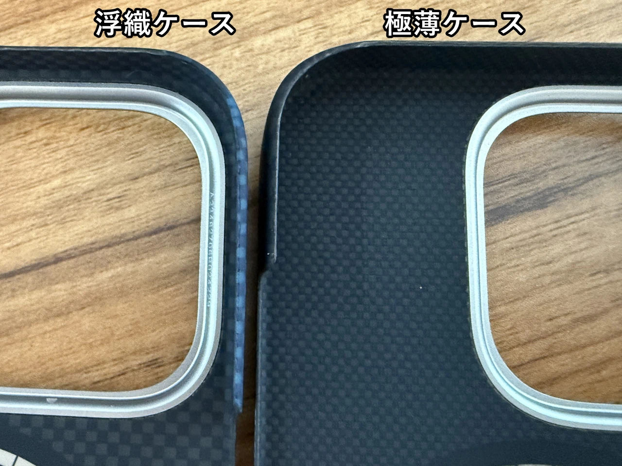 続いて、浮織ケースと極薄ケースを比較してみる。
