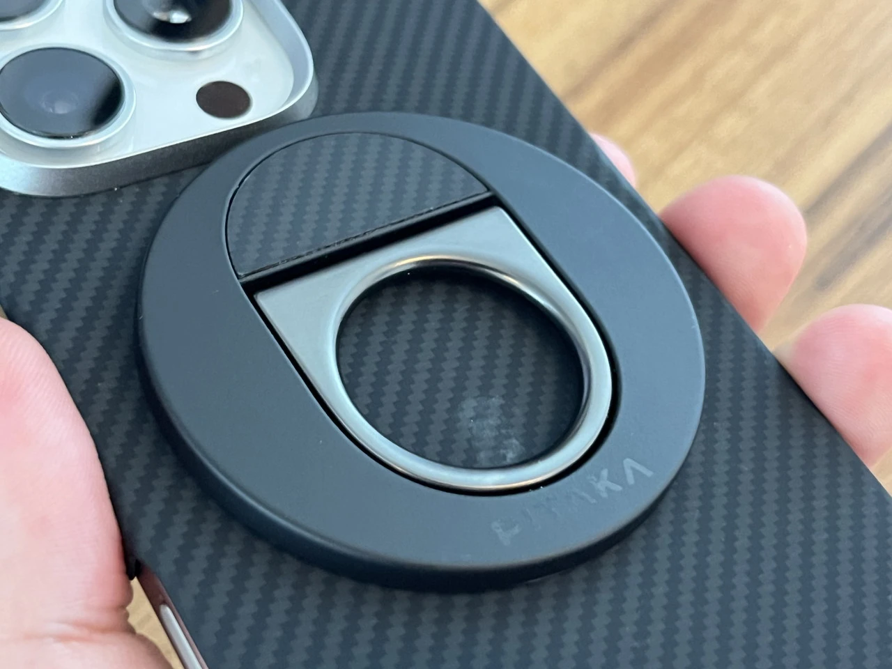 今回のケースに最適なのは、同じくPITAKAが販売している、MagSafe対応の軽量スマホリング「MagEZ Grip」だ。