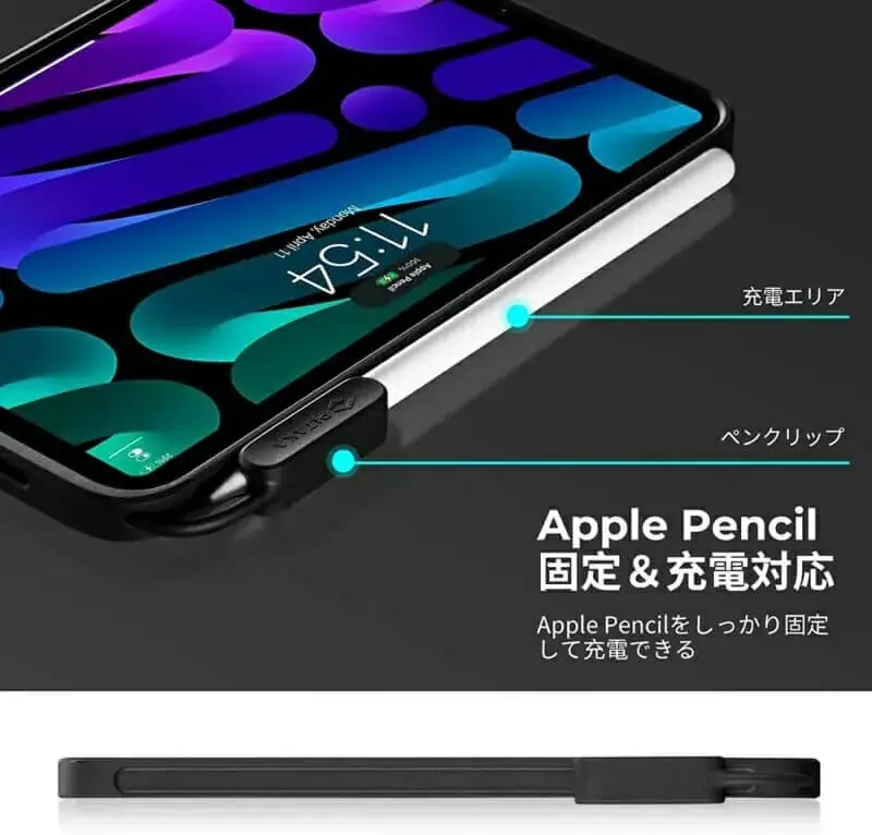なお、ケース装着時に付属のペングリップを取り付けることで、アップルペンシルをケース側面に固定して持ち運ぶことが可能となる。