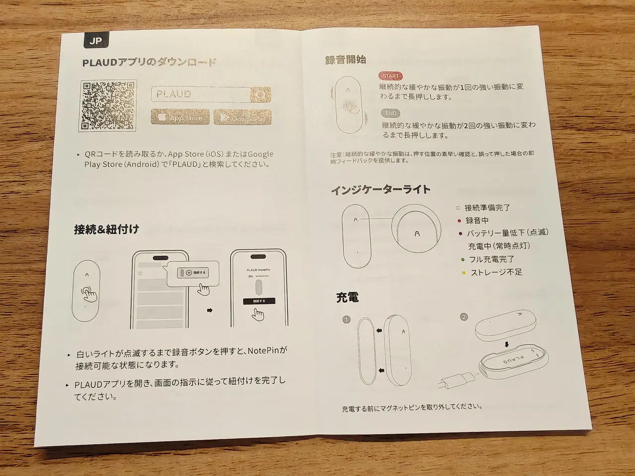 アプリのインストール後、PLAUD NotePinの中央を長押しするとインジケータが点滅し、ペアリングスタンバイ状態となります。