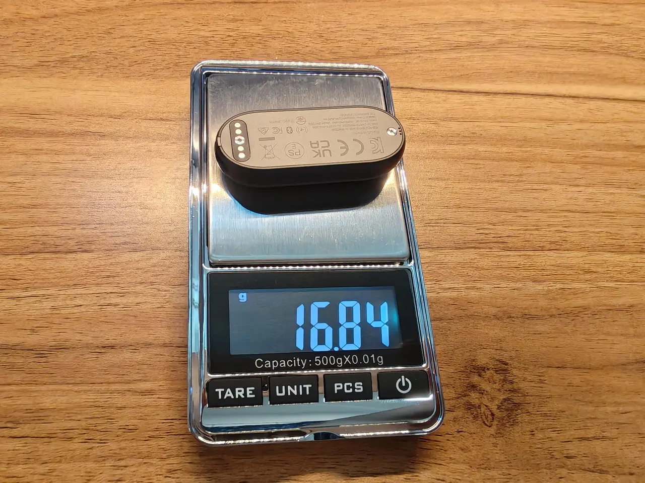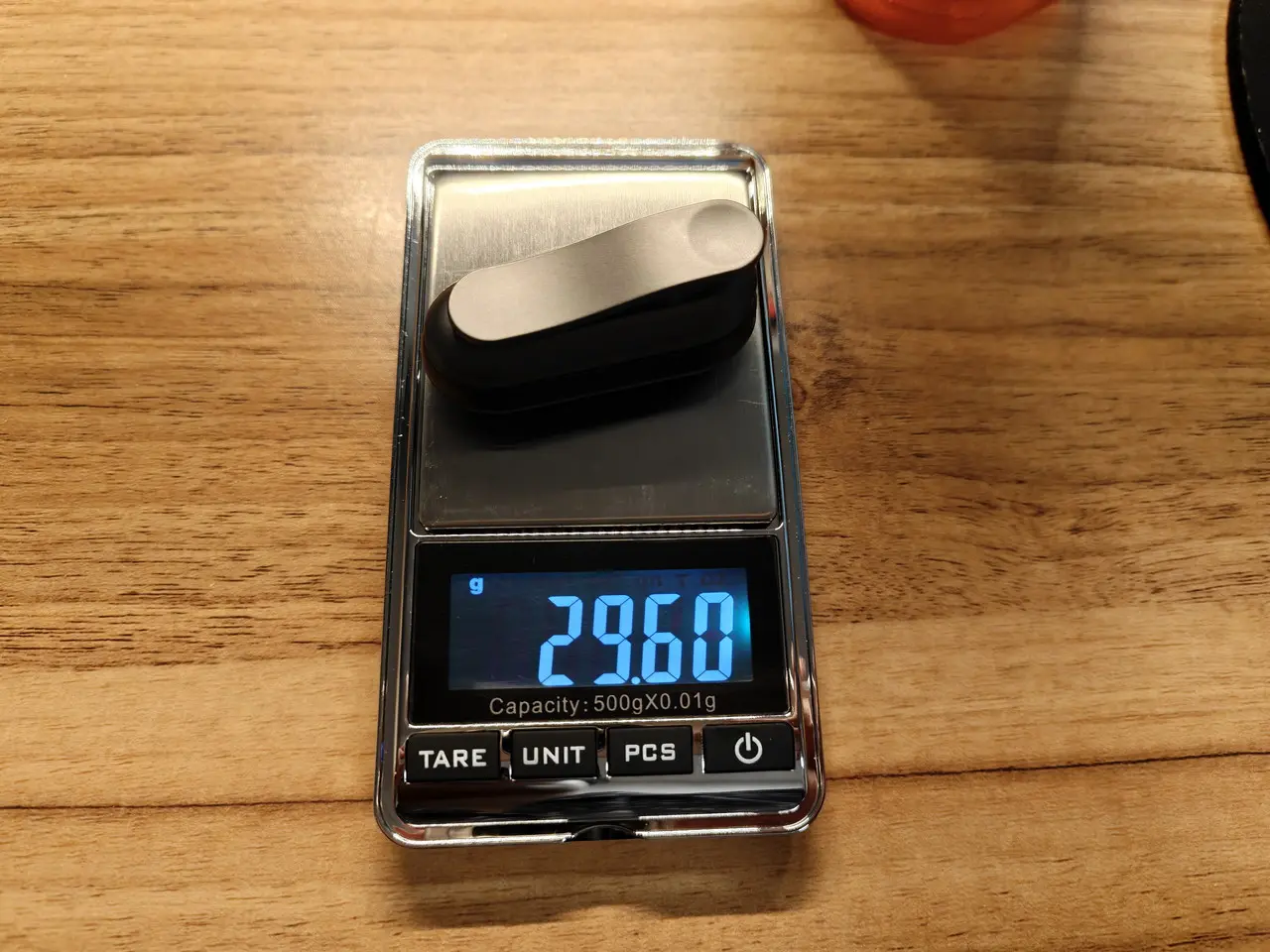 ▼マグネットピンとクリップを取り付けた状態の重量は、実測で約29.6g。十分に軽量です。