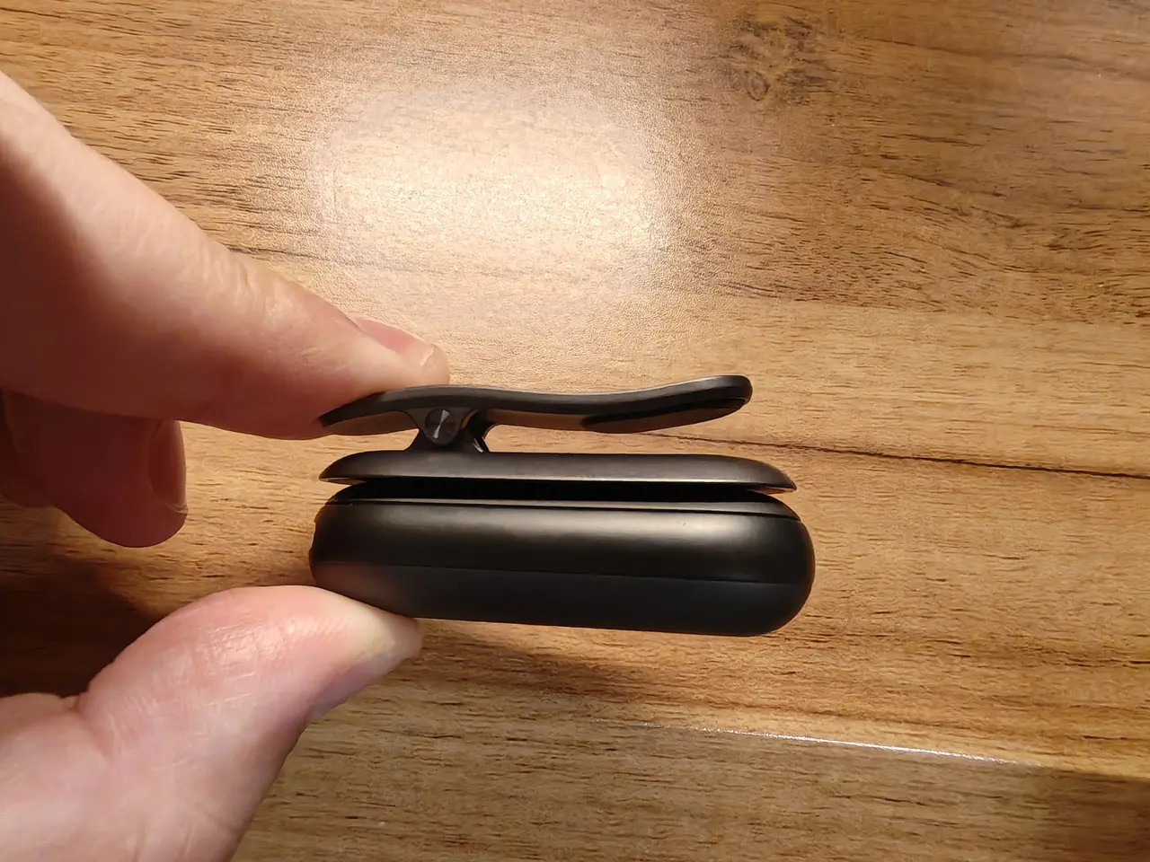▼クリップ式なので脱着が非常に簡単。固定力は強めなため、使用中に落下してしまうことはありませんでした。