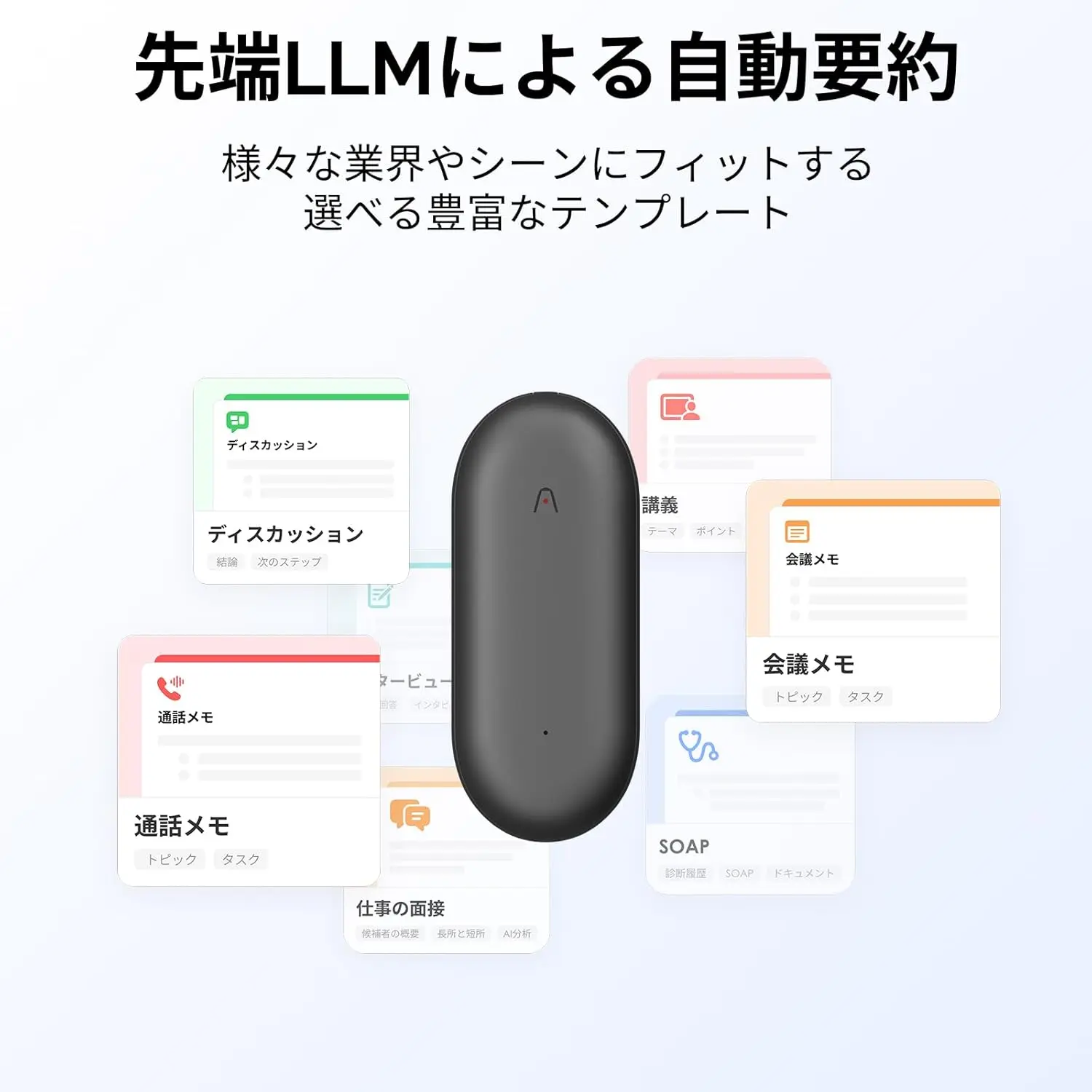 そして本製品はただ録音・文字起こしが可能なだけではなく、最先端の大規模言語モデル(LLM)による要約生成もサポート。複雑な内容も自動で整理され、すぐに読みやすいメモとして残すことができます。