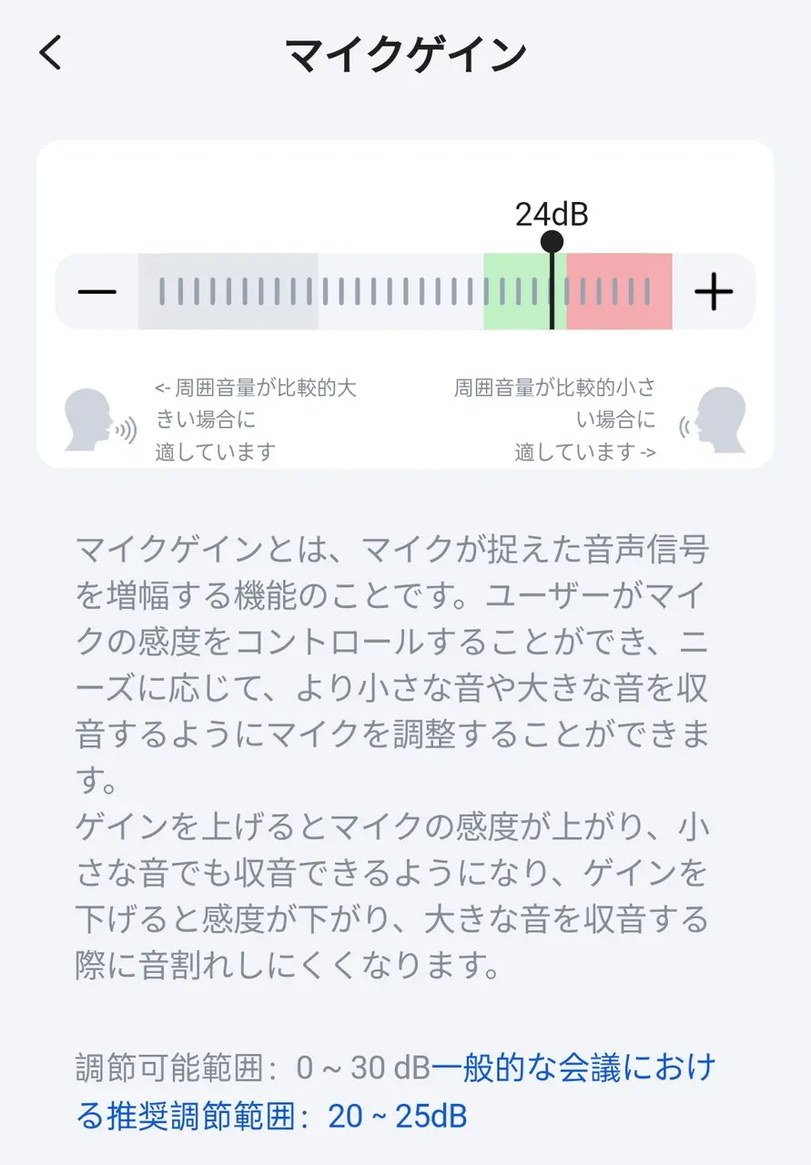 アプリでは過去の録音履歴を確認できるほか、マイク設定、保存データ形式指定などの詳細な調節を行うこともできます。
