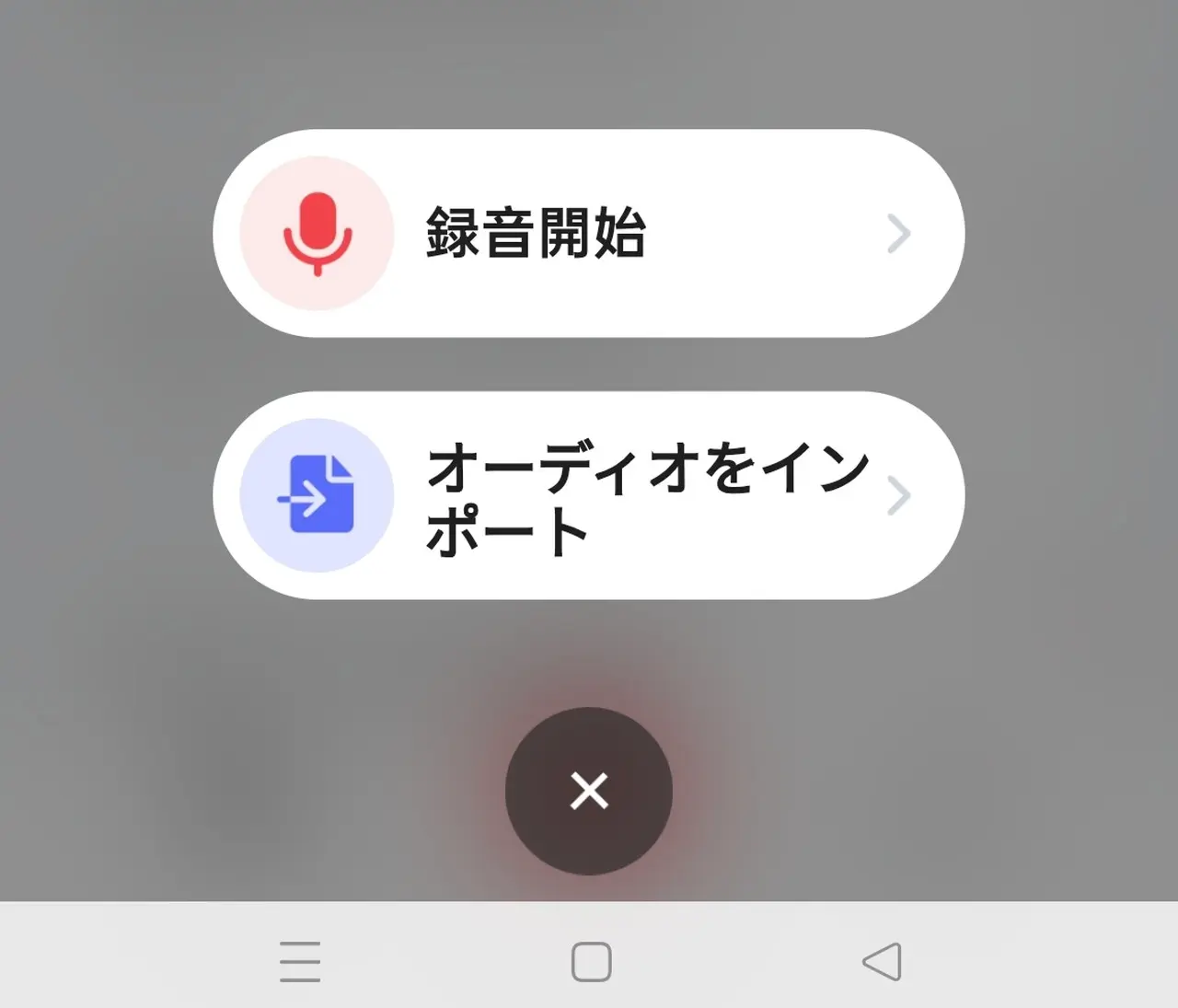 ▼アプリ上の録音開始ボタン。なお、外部からオーディオファイルをインポートして文字起こしすることも可能です。