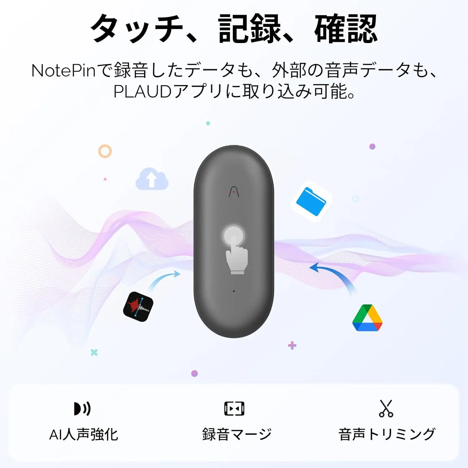 AIオーディオハード/ソフトウェアの設計、開発、販売を一連で行いグローバルに展開するPLAUD(プラウド)は、ミニカプセル型のAIボイスレコーダー『PLAUD NotePin』を販売しています。