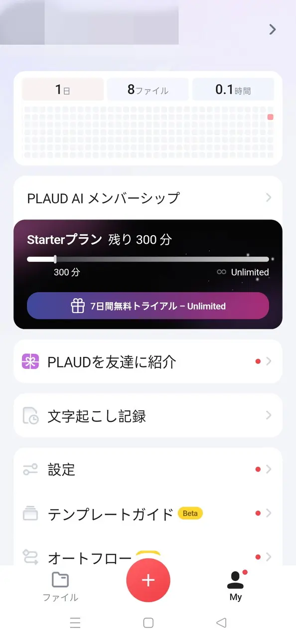 PLAUD NotePin本体の中央を長押しするか、アプリ上の録音ボタンをタッチすることで記録が開始されます。
