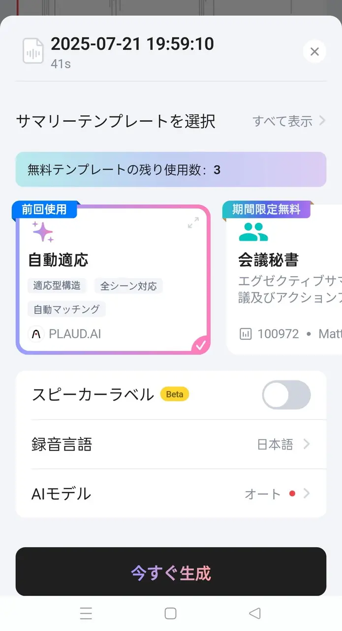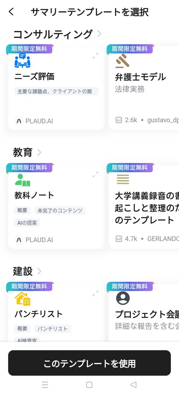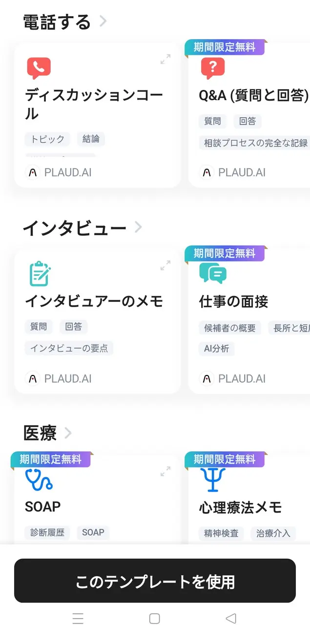 録音データの種類・シーンに応じて最適なテンプレートを選択することで、より精度が高く、適切にまとめられた文字起こし・要約が可能となります。