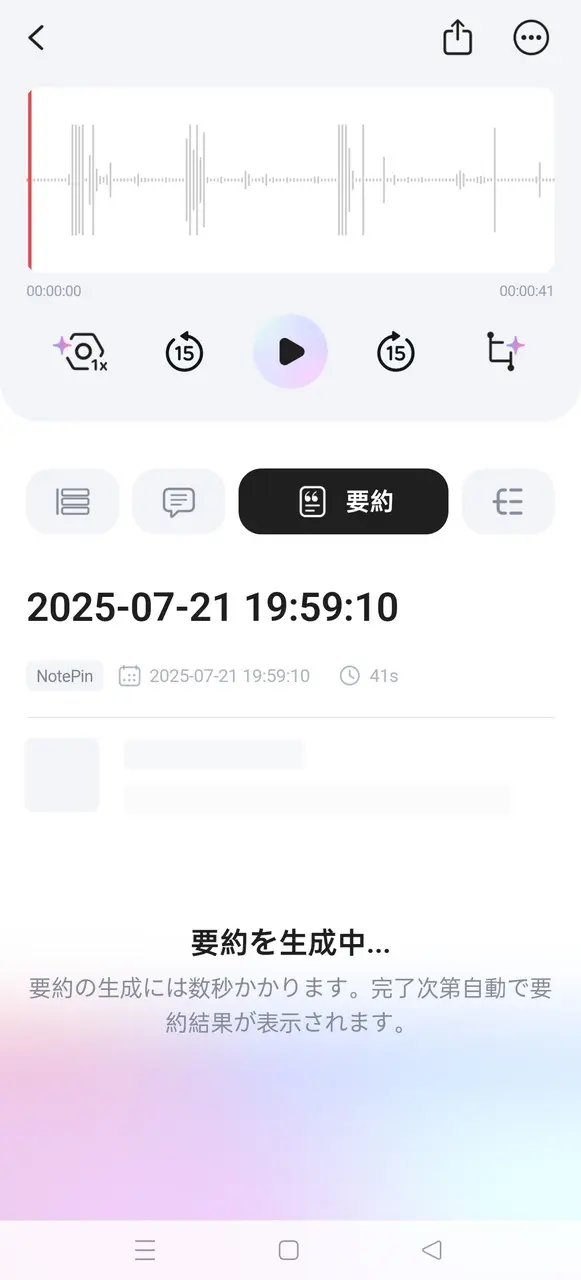 ▼録音データの長さに応じて、要約生成時間も長くなります。今回の30秒ほどの会話の要約の場合、3分ほどで完了しました。