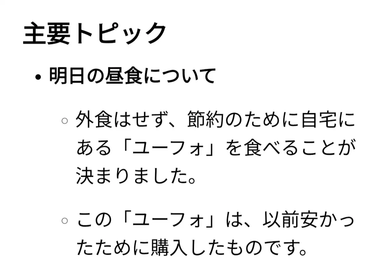 短いですがポイントをシッカリと掴んでおり、会話の内容を端的にまとめられています。