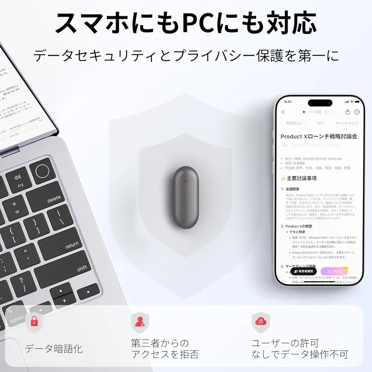 従来のボイスレコーダーのように「ただ録音して終わり」ではなく、その後の活用までをしっかりと見据えて設計されている点が非常に魅力的だと感じました。録音データの自動整理やマインドマップの生成、会話内容に応じたAIの提案機能など、情報を「記録するだけ」から「要約して分析する」ところまでを全自動で行ってくれるため、ビジネスパーソンや学生、研究者、クリエイターなど、あらゆる人々にとって心強い相棒となってくれるでしょう。