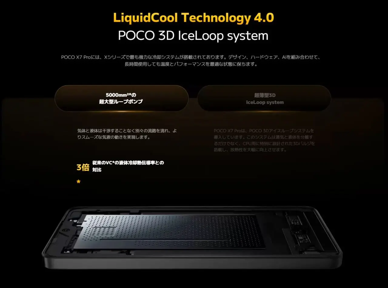 「LiquidCool Technology 4.0」による優れた冷却効率を実現。長時間スマホを使用してもパフォーマンスへの影響を最小限に抑えられるとのこと。