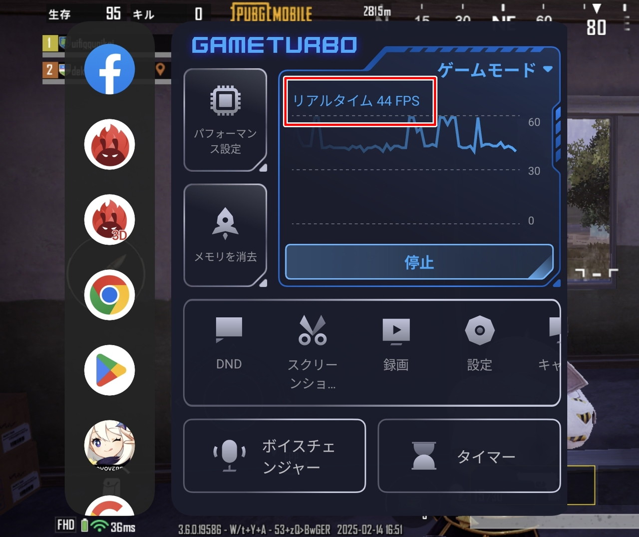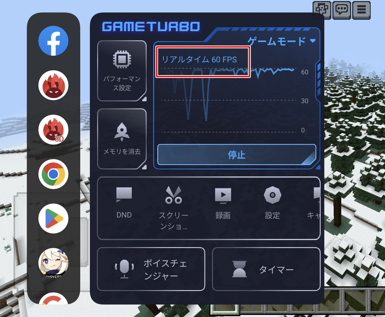 ▼フレームレートは常時60fps前後安定でプレイできていた。