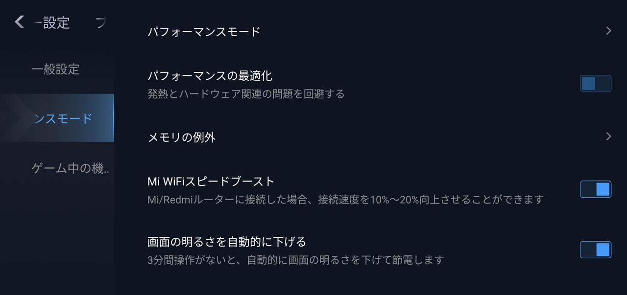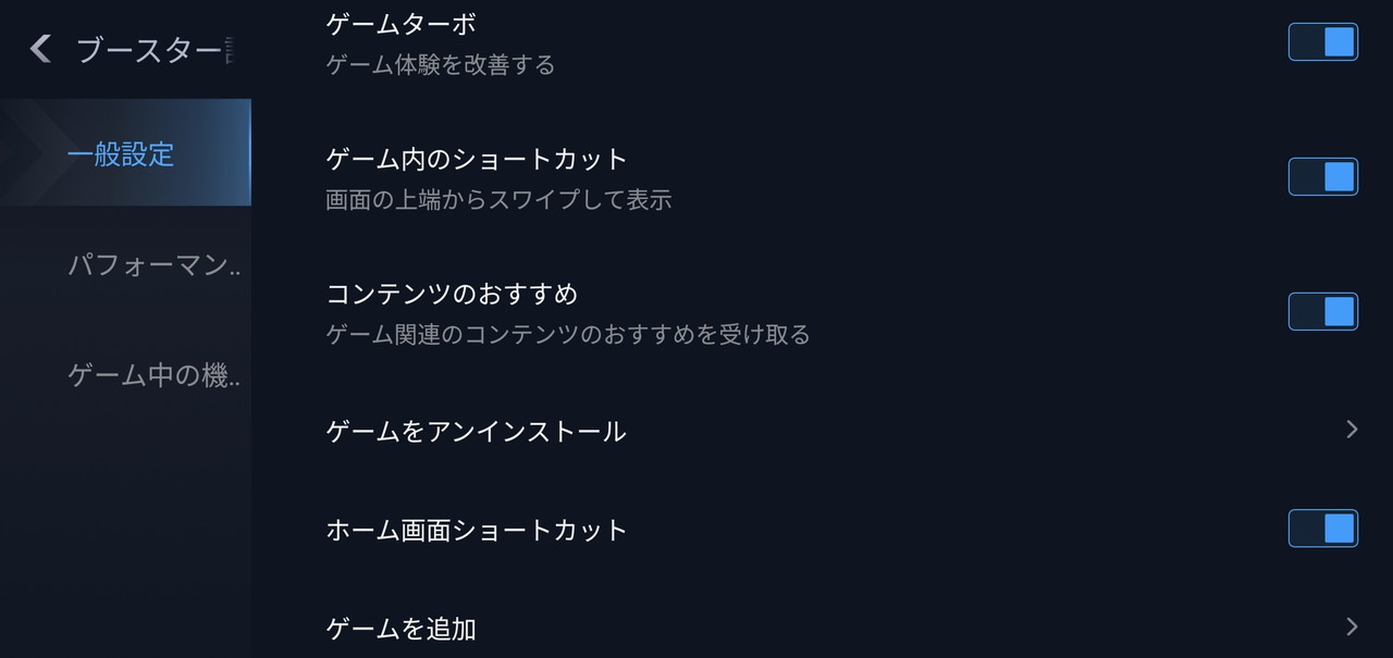 ▼パフォーマンスの切り替えから、画面録画、ボイスチェンジャーなど、ゲーミングに関する様々な便利機能を利用することが可能だ。