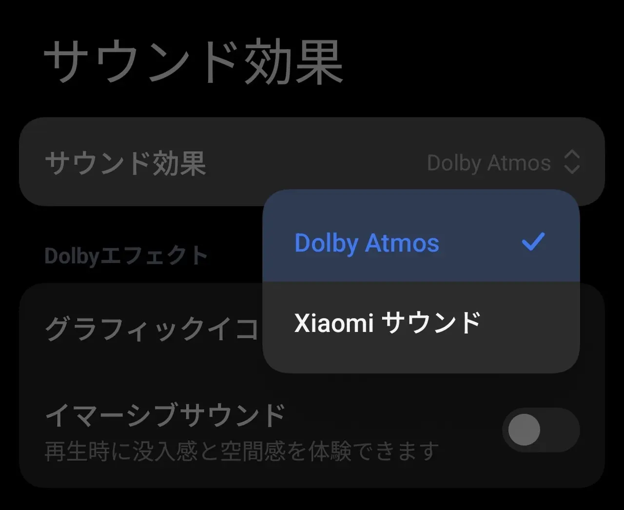 ▼「Dolby Atmos」と「Xiaomi Sound」の2種類からサウンドエフェクトの切り替えも可能。